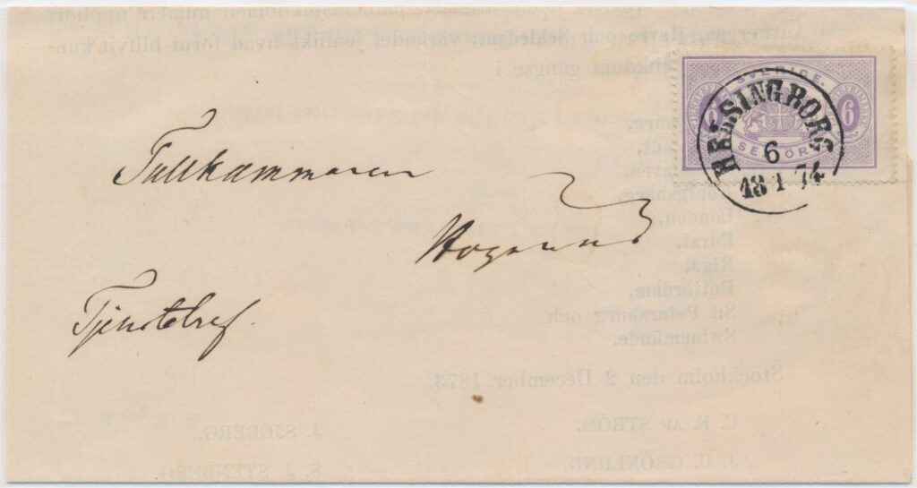 Portot för trycksaker i 1:a viktklassen var 6 öre 01.01.1873-31.12.1876 upp till 12 ort.